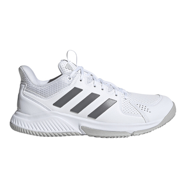 Der Court Flight Damen-Hallenschuh wurde für die vielseitige Spielerin entwickelt. Diese Schuhe bestehen aus einer Mischung aus Textilien und Synthetik, die Haltbarkeit und Atmungsaktivität versprechen. Das synthetische Obermaterial bietet Stabilität im Bereich des Mittelfußes und der Ferse und sorgt für eine sichere Bewegung auf dem Platz. Die teilweise aus recycelten Materialien hergestellten Schuhe verfügen über eine durchgehende CLOUDFOAM+ Zwischensohle für erstklassigen Komfort und Dämpfung. Die ADIWEAR NON-MARKING Gummilaufsohle bietet hervorragende Traktion und Haltbarkeit. Diese Schnürschuhe eignen sich perfekt für verschiedene Hallensportarten und sind ebenso klassisch wie langlebig.