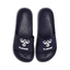 Diese Slides überzeugen durch ihre weiche, stoßdämpfende EVA-Außensohle, die für ein leichtes und angenehmes Tragegefühl sorgt. Das geformte Fußbett bietet zusätzlichen Halt und Komfort, während das hummel Logo dem Design einen sportlichen Touch verleiht – ideal für entspannte Tage oder den Weg zum Training.