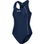 Der hmlPULSE PIPING SWIMSUIT ist aus weichem, dehnbarem Jersey-Material gefertigt, das für Komfort und Bewegungsfreiheit sorgt. Der Badeanzug hat eine enge Passform, ohne einzuengen, und ist mit dekorativen Paspelierungen und einem mittigen hummel Logo auf der Vorderseite versehen. Das Design wird durch einen offenen Rücken und kleine hummel Chevrons auf dem Träger zwischen den Schulterblättern abgerundet.