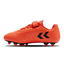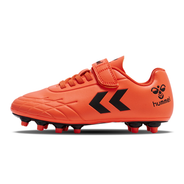 Fußballschuh für feste Böden. Ein weiches PU-Obermaterial mit elastischen Schnürsenkeln und Klettverschluss, weichem Mesh-Futter und gestanzter Innensohle. Prägungs- und Druckdetails auf dem Obermaterial. Inspiriert von der stolzen Geschichte der Fußballschuhe von hummel.