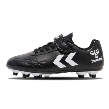Fußballschuh für feste Böden. Ein weiches PU-Obermaterial mit elastischen Schnürsenkeln und Klettverschluss, weichem Mesh-Futter und gestanzter Innensohle. Prägungs- und Druckdetails auf dem Obermaterial. Inspiriert von der stolzen Geschichte der Fußballschuhe von hummel.