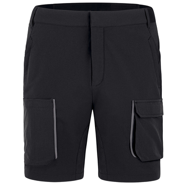 Hergestellt aus elastischem, strapazierfähigem und atmungsaktivem 4-Wege-Stretch Material 40 °C waschbar Ergonomische Passform Einschubtaschen für Cuttermesser oder Stifte Seitentaschen mit Reißverschluss Handytasche mit Klettverschluss Gesäßtasche mit Klettverschluss Reflektierende Einsätze Bund mit Druckknopf, Haken und Reißverschluss Gürtelschlaufen JAKO Flaglabel an der hinteren Naht
